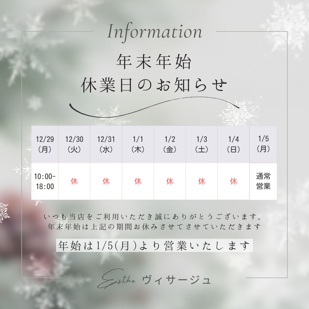 12月30日㈫~2026年1月4日㈪は休業させていただきます。
